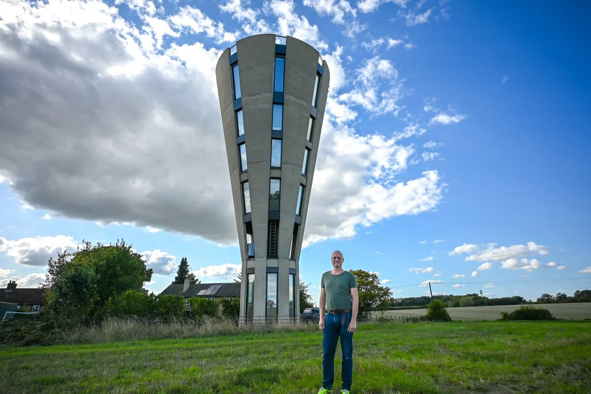 A conversion of a 1960s Brutalist water tower into a family home in Hertfordshire.