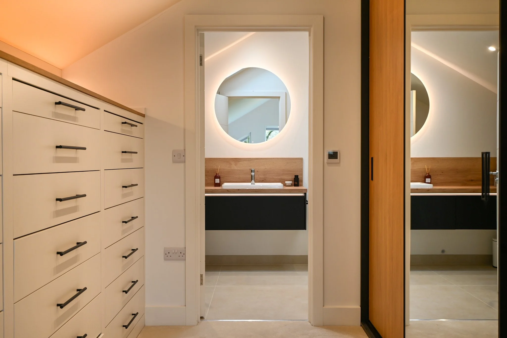 Central to the project was the integration of renewable technology and low-energy construction methods. An air source heat pump system provides heating and energy efficiency, supported by solar panels and battery storage. The aim was to reduce reliance on traditional energy sources and achieve a high standard of thermal performance.