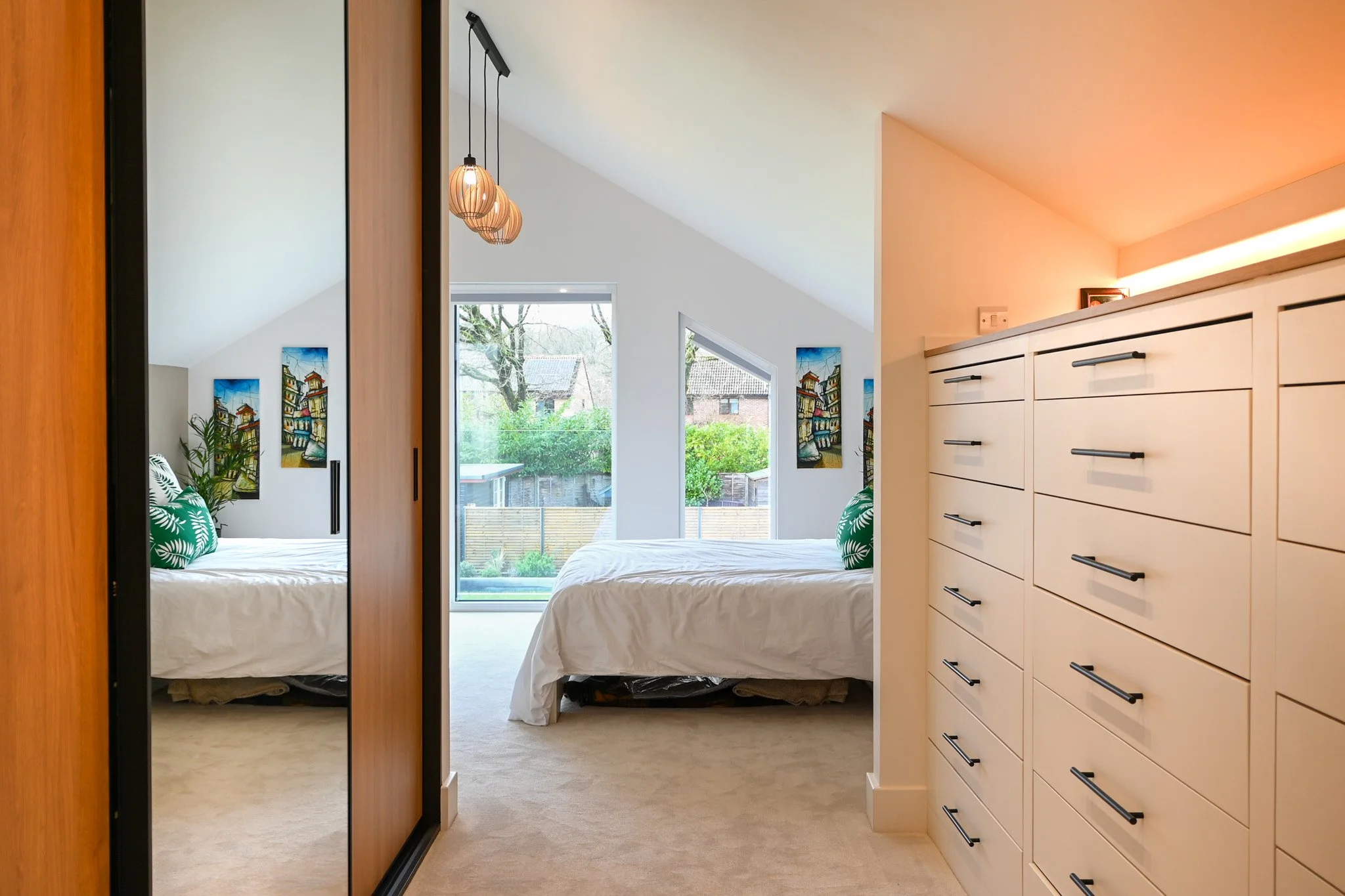 Storage was prioritised throughout the design. Built-in wardrobes and ottoman beds maximise space – an essential consideration in family homes.
