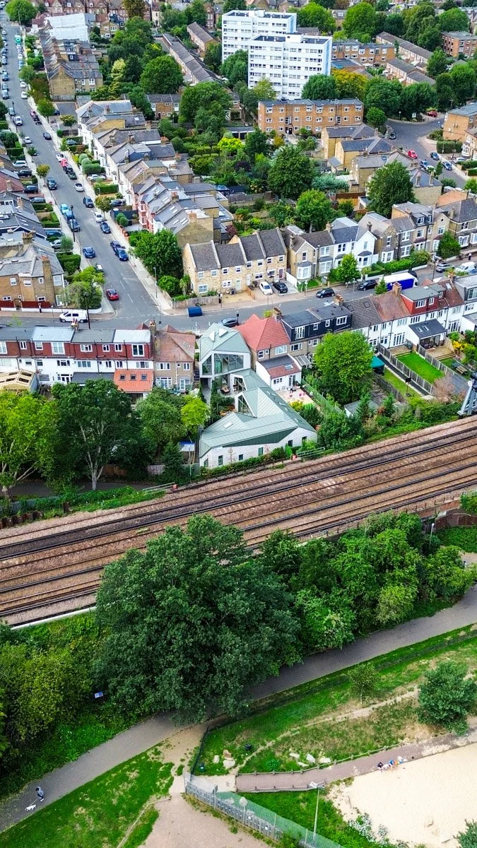 “We bought the site about four or five years ago,” explains Tom. “It was a tricky triangular plot with garages at the back and a railway line beyond. I went through about four applications before landing on this design - and it’s definitely the most ambitious one yet.”