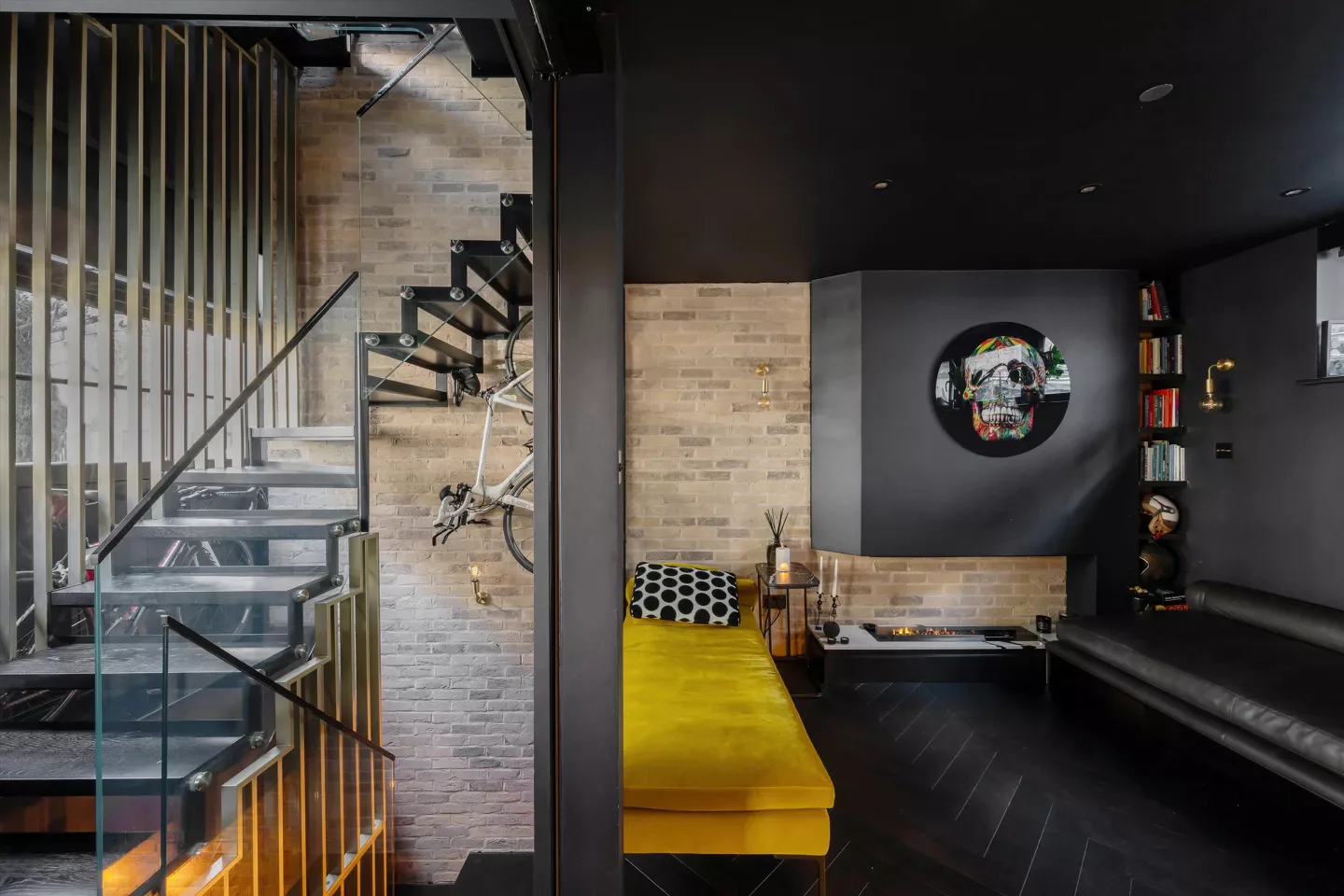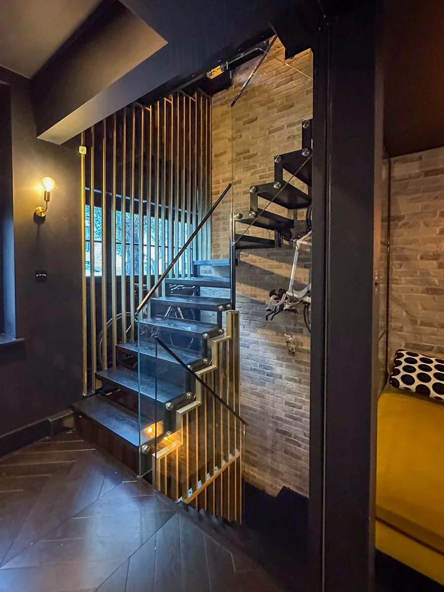 The central staircase connects the four levels and plays with vertical space, light, and material. Open to the roof light, it floods the home with natural illumination while linking the basement, living areas, and upper floors. Brick, wood, and metal echo throughout, unifying the house’s aesthetic. Jules explains, “The staircase isn’t just functional—it’s a design statement that brings light and drama into every floor.”